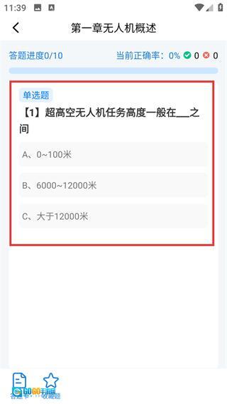 4、进入【第一章无人机概述】练习后,可看到单选题型的题目,可开始作答并查看正确率。