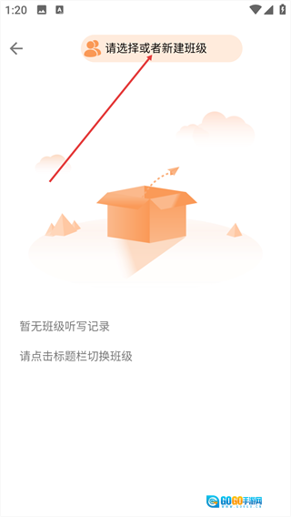 2、进入班级管理页面,点击顶部【请选择或者新建班级】标题栏。