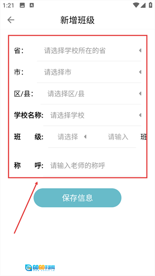 4、依次填写省、市、学校、班级等信息,完成后点击【保存信息】按钮,创建班级。