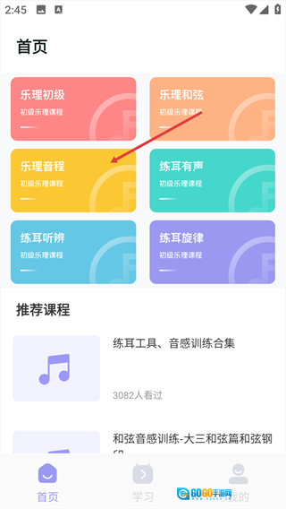 1、在首页,找到【乐理音程】课程板块并点击。
