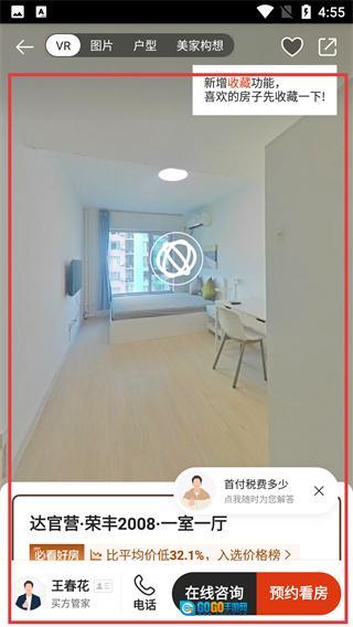 4、进入房源详情页,可通过【VR】查看房屋实景,还能点击【预约看房】按钮,联系管家安排实地看房。