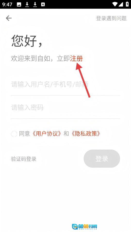 3、在登录界面,点击【注册】选项,进入注册流程。