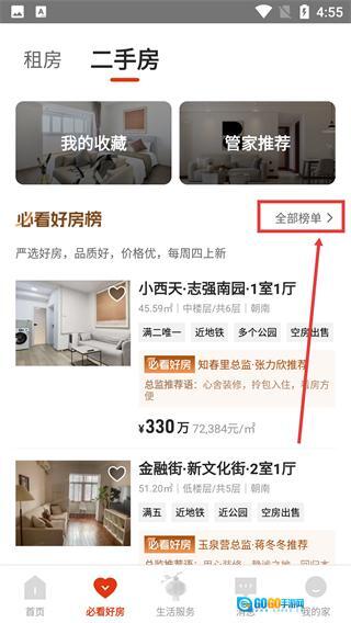 2、在【必看好房】页,点击【全部榜单】选项,可进入完整的好房榜单页面,浏览更多优质房源。
