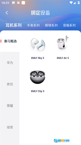 4. 进入后可以选择设备型号,当前支持索尼、倍思、华为以及荣耀系列的多款蓝牙设备。