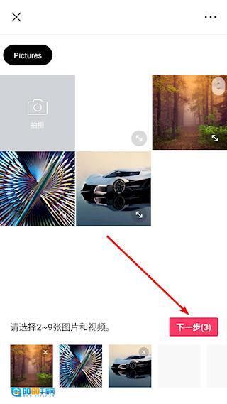 2、选择多张图片,点击下一步