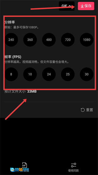 4、选定分辨率与帧率参数后,点击界面右上角的【保存】按钮,即可完成转换操作。