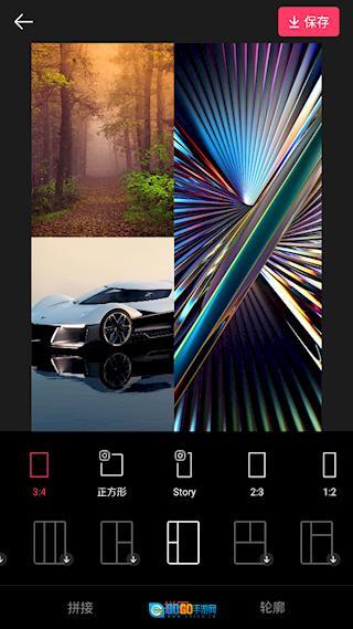 3、选择拼图布局和比例进行应用