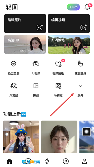 1、打开【轻图】的主界面后,点击功能区域里的【展开】按钮。