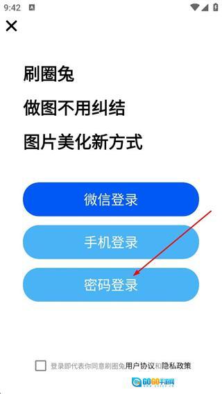 3、在登录选择页面,点击密码登录选项,即可切换到手机登录界面。
