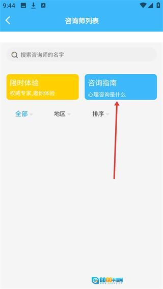 在咨询师列表页面,点击【咨询指南】按钮,即可进入心理咨询相关的科普页面。
