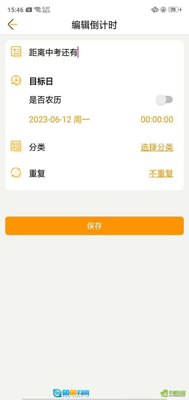 2、点击上图中的时间区域即可进入设置界面;若为高考相关设置,可将文字改为“距离高考还有”,随后修改具体时间,点击下方的保存按钮完成操作。