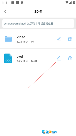 3、进入SD卡页面后,找到需要操作的目标文件,点击该文件对应的编辑功能按钮。