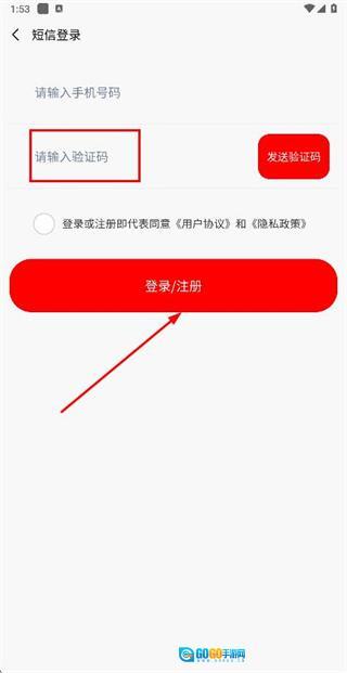 3、在验证码输入框内填入收到的验证码,点击登录按钮以完成账号登录流程。