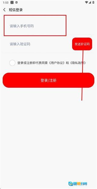 2、在短信登录页面输入手机号,勾选相关协议后,点击“发送验证码”按钮。