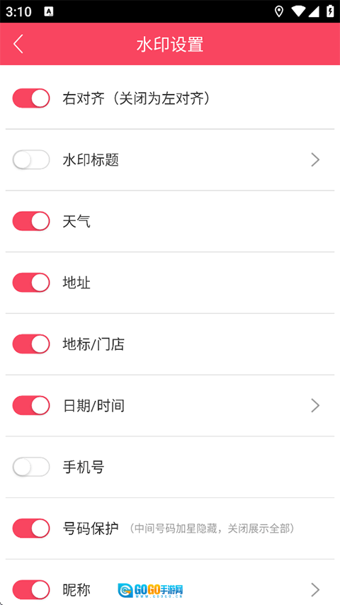 5、您可以自由调整需要显示/隐藏的水印项目;