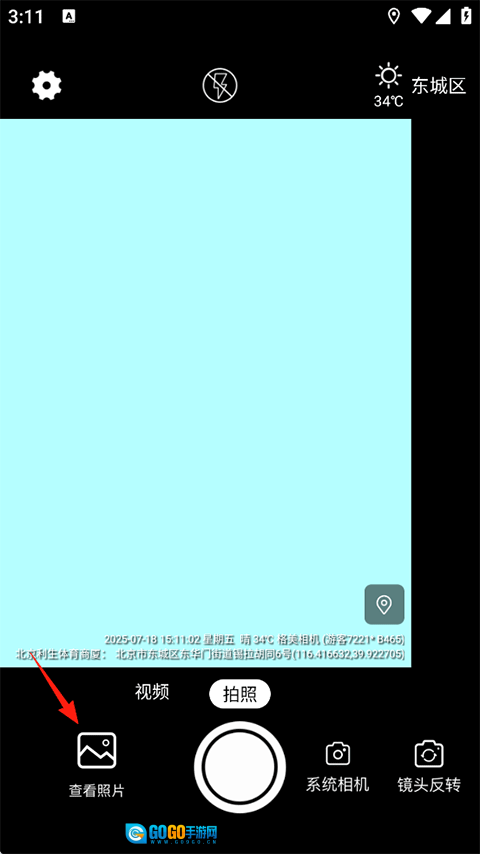 1、打开格美相机后,能看到界面下方已实时显示时间水印;