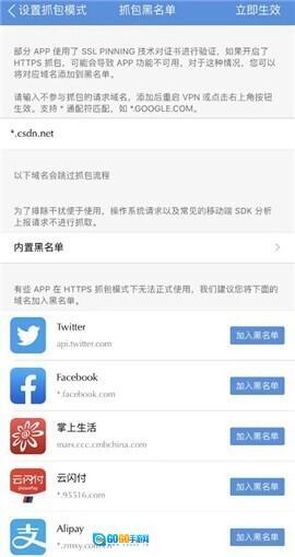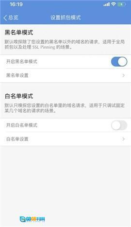 1、黑名单模式:开启设置后,点击设置抓包模式选项,即可进入对应的设置界面,相关截图展示如下: