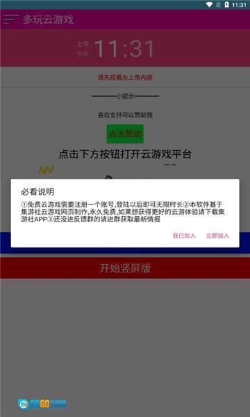 1、打开多玩云游戏,查看必看说明。