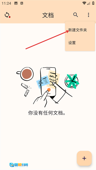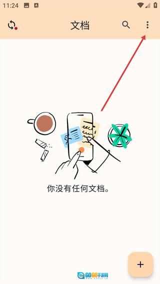 1、打开“文档”页面,点击右上角的三点菜单图标,展开功能选项列表。