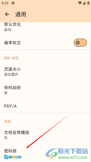 4、接着会进入新页面,此时需要向上滑动屏幕,找到并点击页面最底部的“密码锁”选项。