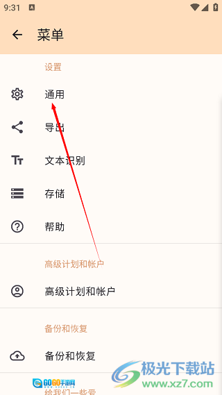 3、进入“设置”界面后,点击选项列表里的“通用”选项。