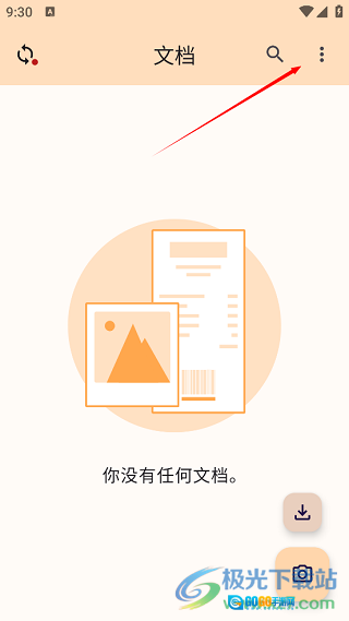 在精灵扫描的首页界面,你可以添加手机里的文档并开展相关操作,此时需要点击页面右上角的三点图标。
