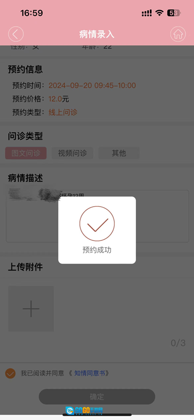 病情录入,点击确认并支付