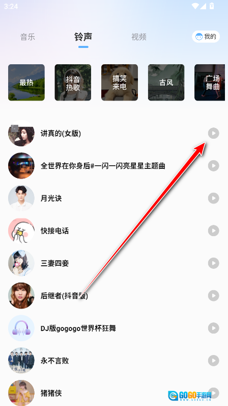 5、点击对应铃声的播放按钮,就能畅享喜爱的铃声内容。