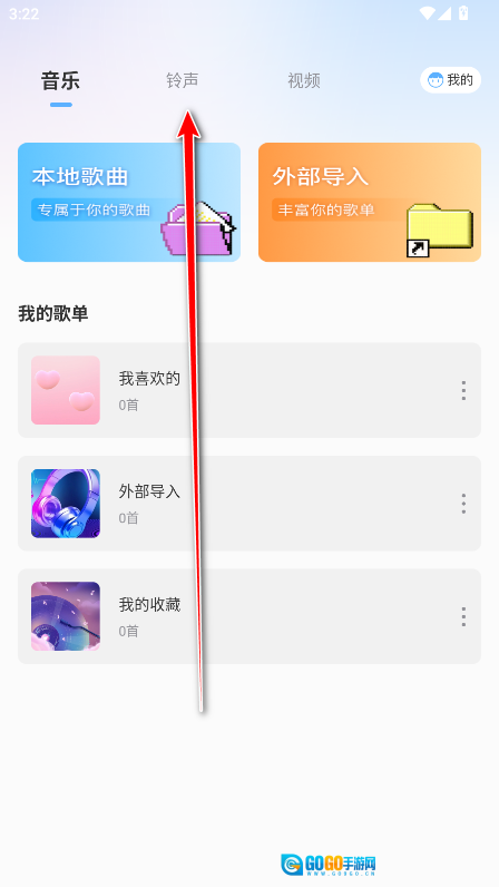 4、返回主界面后,点击 “铃声” 选项,进入铃声播放专区;