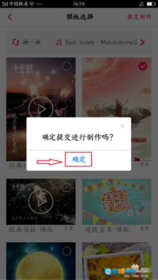 5、点击提交制作按钮,在弹出的提示对话框中点击确定,动态影集即可制作完成。