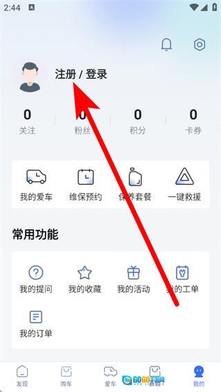 2、在个人页面,点击注册登录,进入登录注册页面。