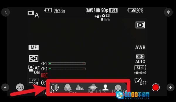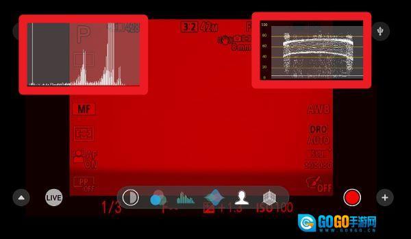 3、在拍摄画面界面的下方,可快速切换直方图、斑马纹、伽马曲线等辅助功能,以此优化图像表现。