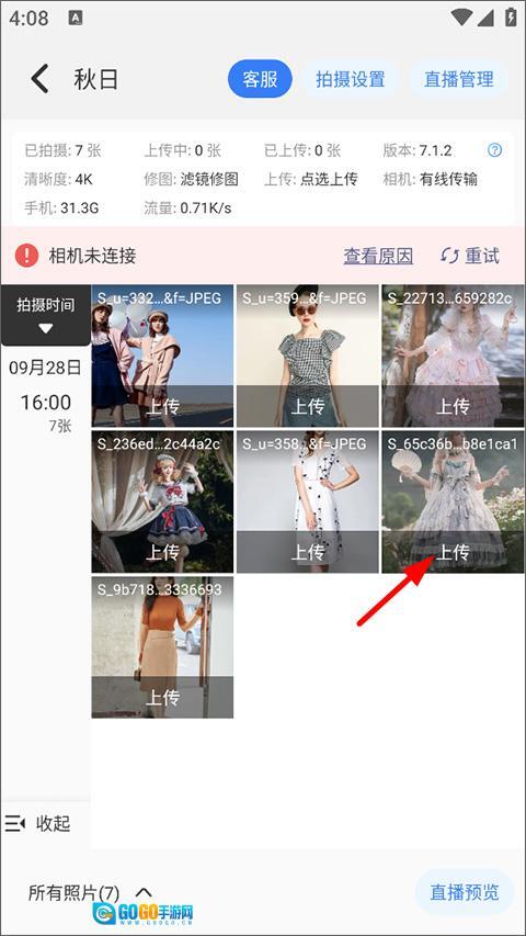 6、返回创建的照片直播页面即可看到所选照片,点击上传按钮完成提交。