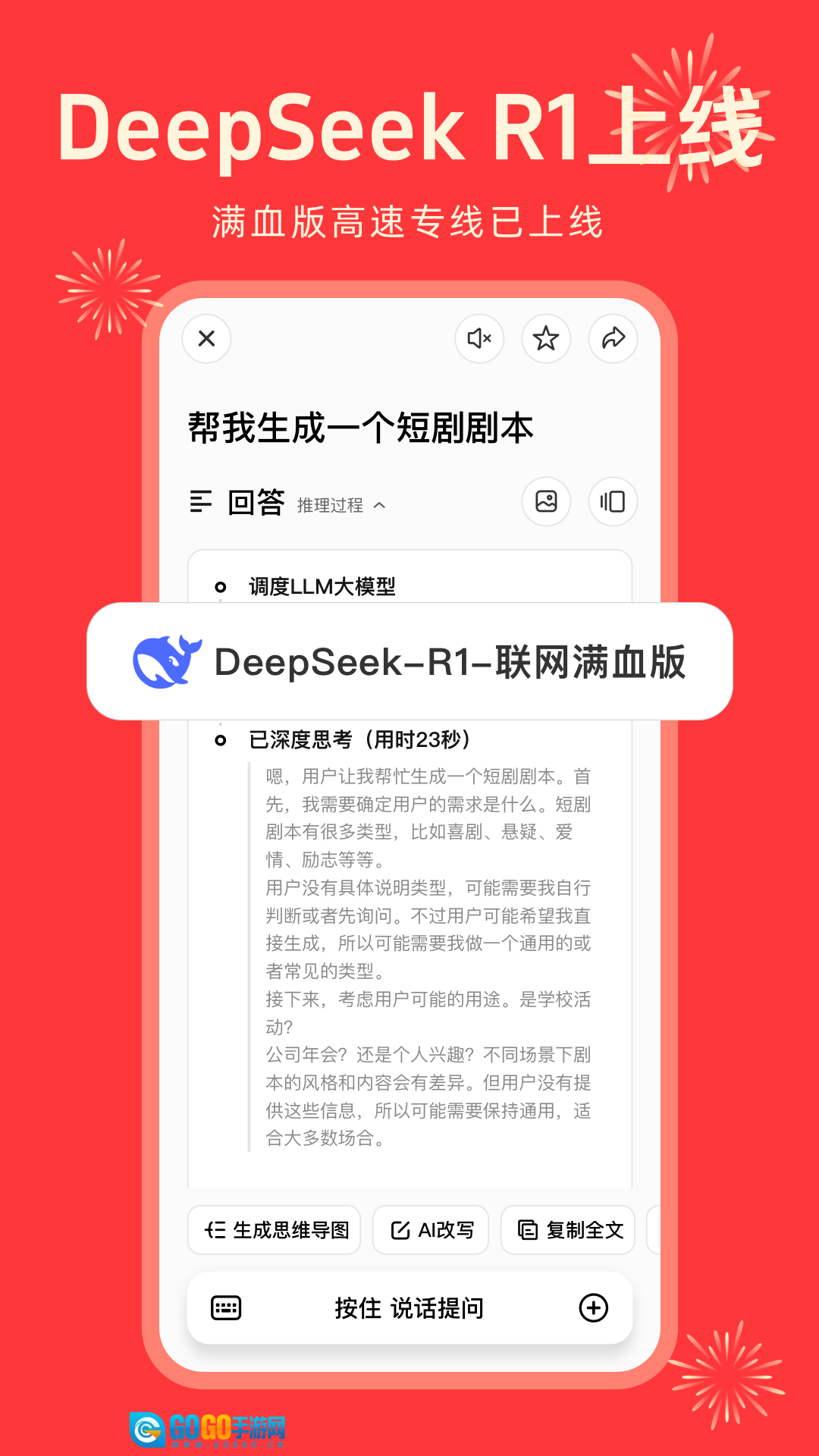 1. 推理大模型DeepSeek-R1的高速专线使用服务由纳米AI提供。