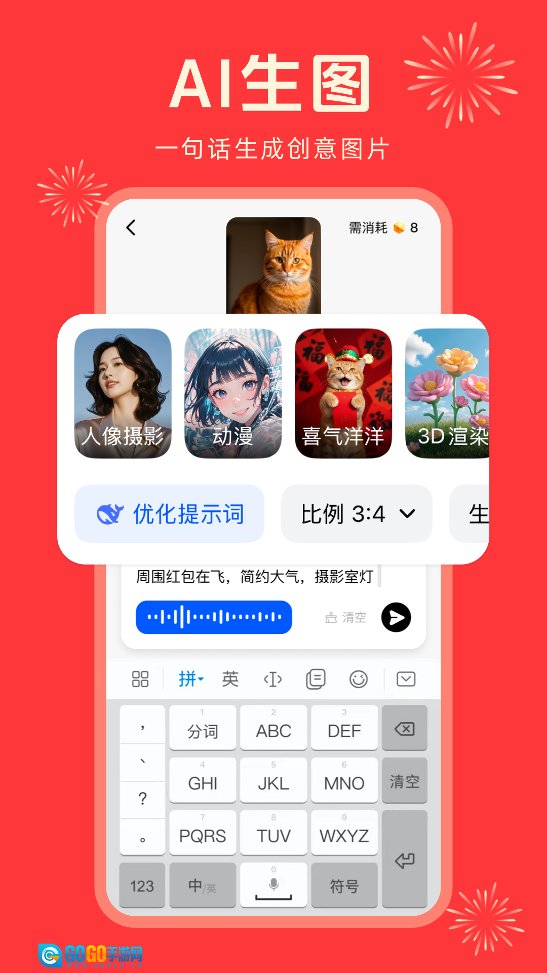 4.AI生成图片仅需一句话就能产出精美的图片,并且有多种风格可供挑选。