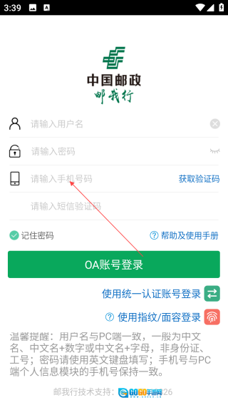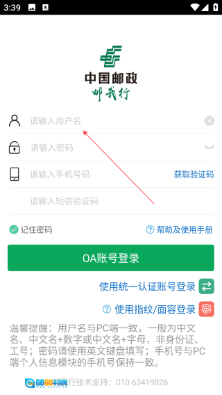 1、打开邮我行,点击【输入用户名】。
