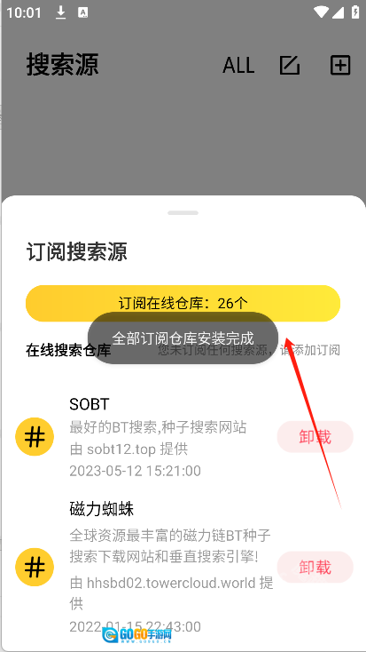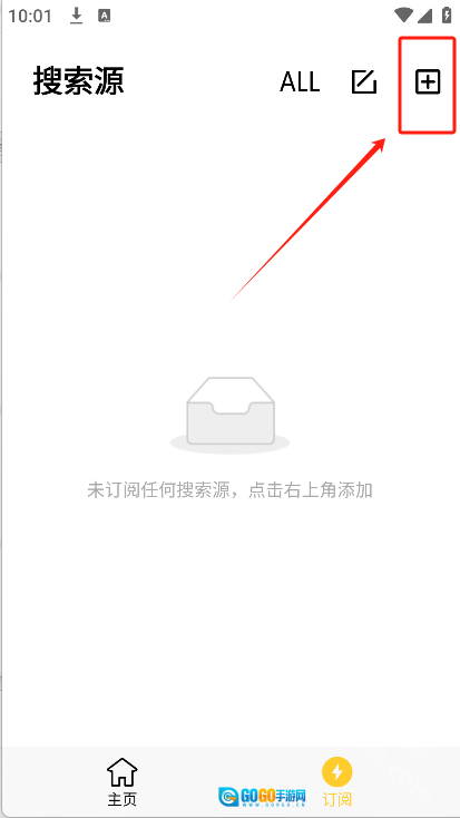 5、依照上述步骤完成源的订阅操作后,返回首页并点击搜索框。