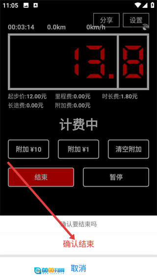 4、当弹出“确认要结束吗”的提示窗口时,点击【确认结束】按钮,即可完成本次计费流程的收尾工作。