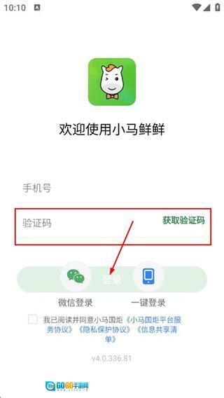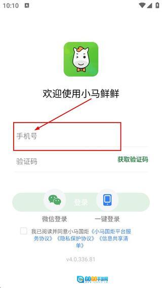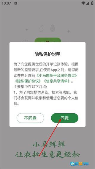 1、在隐私保护说明弹窗里点击同意,即可进入小马鲜鲜的登录页面。