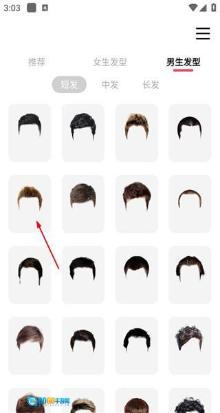 4、切换到男生发型的短发类别,浏览对应的发型样式,查看不同款式男生短发的呈现效果。
