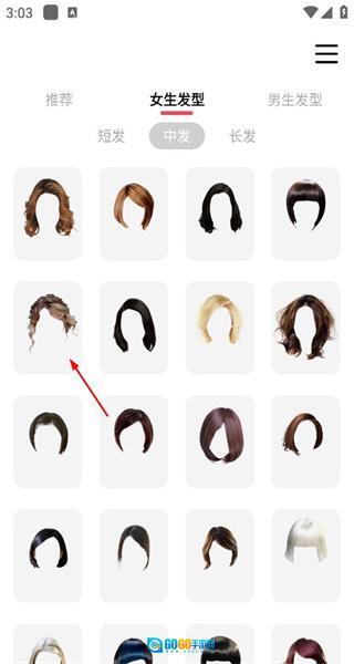2、切换到女生发型的中发类别,浏览相应的发型样式,查看不同颜色和款式的中发所呈现出的效果。