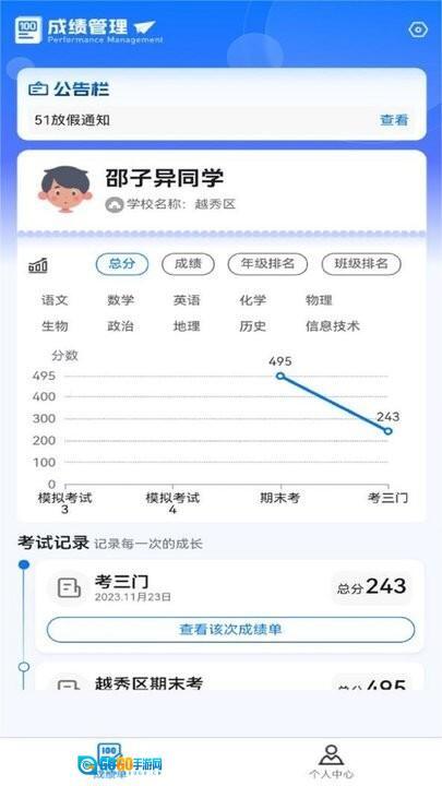 百分成绩管理系统是借助学校考试帮助家长全面掌握孩子学习状况的实用工具,家长能够查询学生考试和学情等基础信息,开通升级服务还能查看多维度的学情分析与学科分析。好分数平台通过收集考试大数据,运用人工智能技术展开分析挖掘,精准定位学习盲区、找出知识漏洞,进而为学生提供个性化的学业提升方案。