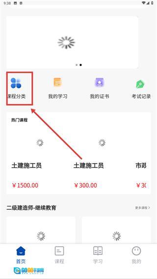 1、点击【课程分类】选项,进入课程分类界面后,就能查看各个专业类别的培训课程,以此为后续选课工作做好准备。