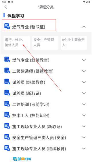 2、进入课程分类页面后,展开类似【燃气专业-(新取证)】这样的分类,接着挑选对应的岗位方向(例如运行-维护-抢修人员),以此筛选出目标课程。