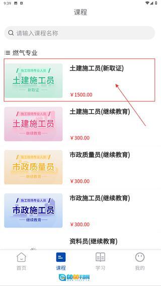 3、进入课程列表页面后,找到【土建施工员-(新取证)】这一课程条目,点击进入该课程的详情页,查看并了解相关课程信息。