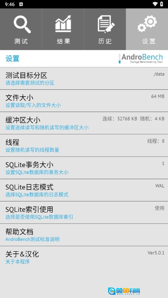 在设置界面中,我们能够对软件执行对应的设置操作,以保证可以得出相对精准的测试结果。