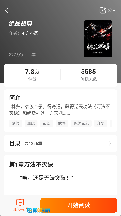 5、接着点击“开始阅读”按钮,就能开启所选小说的阅读之旅了。