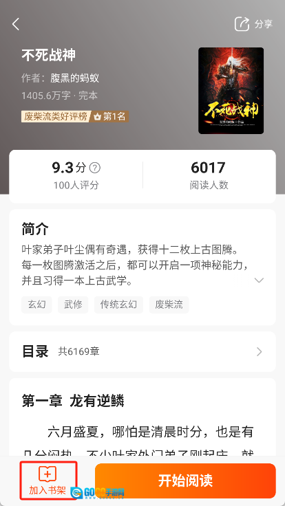 6、你也可以点击“加入书架”按钮,把这本小说存到个人书架里。