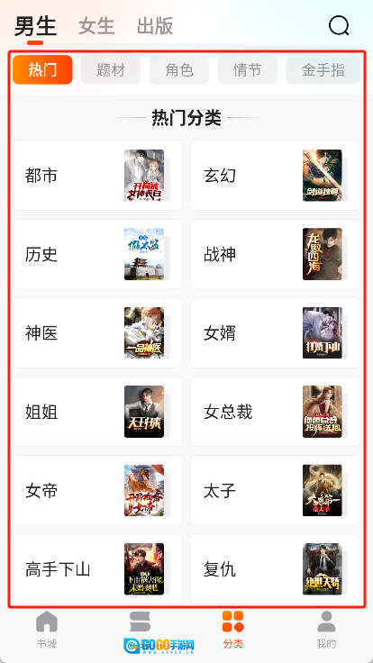 2、接着打开应用,进入软件后点击分类选项,浏览各类小说类别。