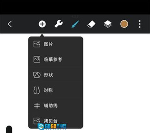 1、在创建好自己的画布后,点击上方的+号图标,即可弹出菜单栏,